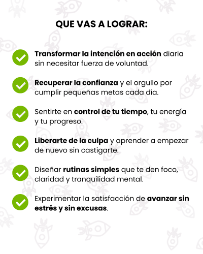 Porque entendemos lo frustrante que es saber qué hacer y no poder hacerlo. Esta metodología fue diseñada para que finalmente conectes con la acción, sin motivación forzada ni culpa.